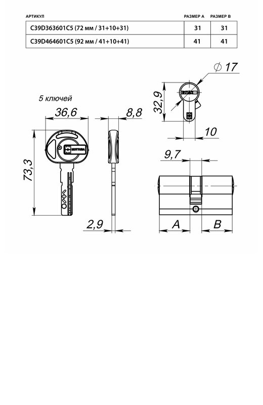 - Тип цилиндраКлюч-ключ