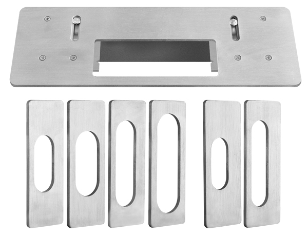 Шаблон предназначен для врезки 4000 и 6000 петель Армадилло + Eclipse2.0. В комплектацию входит корпус шаблона и проставочные пластины, (по 2 на каждую модель - для внутренней и внешней части петли) Каждая пластина находится в индивидуальной упаковке, что предотвращает ее от повреждений.