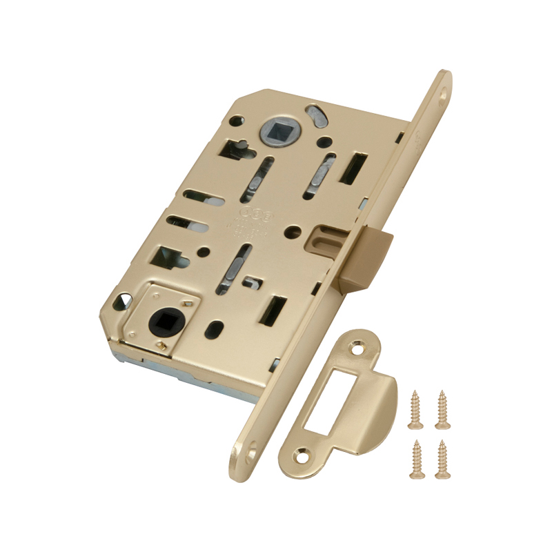 Замок врезной бесшумный B01102.50.03.567 с защелкой WC серии MEDIANA EVOLUTION предназначен для установки в межкомнатные двери. В комплектацию входит ответная планка B01000.13.03 короткая с загнутым язычком. Замок подходит для левых и правых дверей. Более тихий замок благодаря новой конструкции и новым внутренним компонентам. Бесшумная пластиковая защелка с двойным наклоном может фиксироваться ключом внутри замка (при перевозке деревянного полотна). Новая защищенная патентом система поворота защелки. Цвет: латунь. Упаковка: блистер.