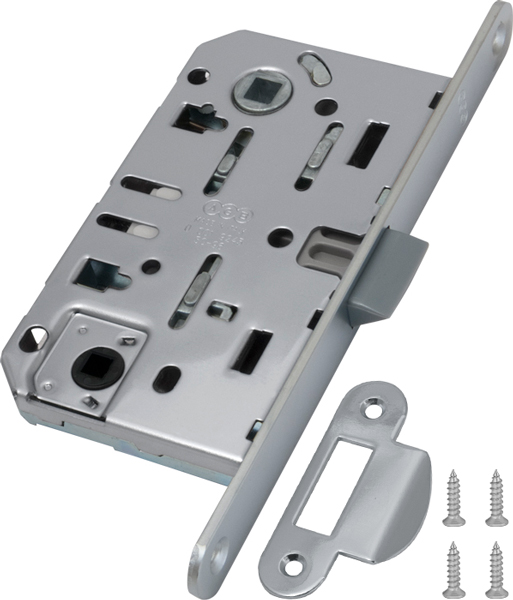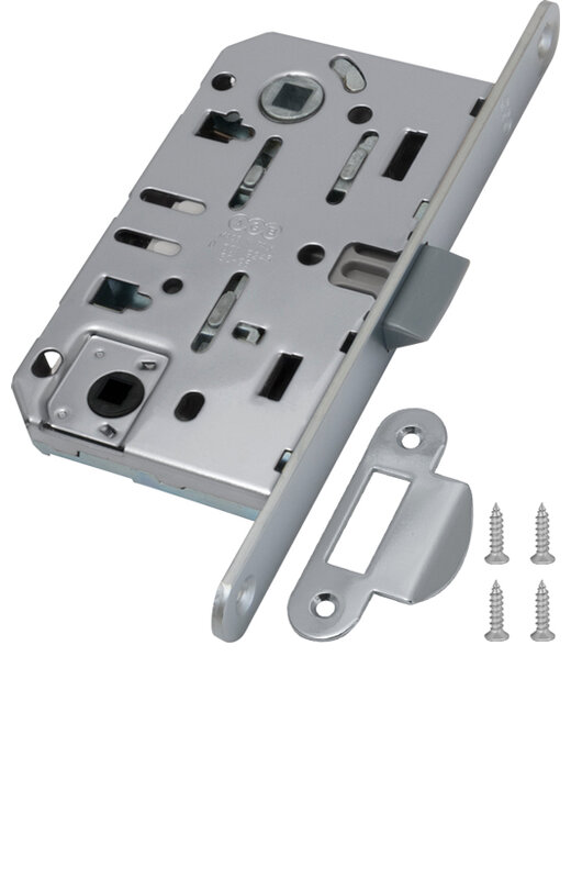 Замок врезной бесшумный B01102.50.34.567 с защелкой WC серии MEDIANA EVOLUTION предназначен для установки в межкомнатные двери. В комплектацию входит ответная планка B01000.13.34 короткая с загнутым язычком. Замок подходит для левых и правых дверей. Более тихий замок благодаря новой конструкции и новым внутренним компонентам. Бесшумная пластиковая защелка с двойным наклоном может фиксироваться ключом внутри замка (при перевозке деревянного полотна). Новая защищенная патентом система поворота защелки. Цвет: матовый хром. Упаковка: блистер.