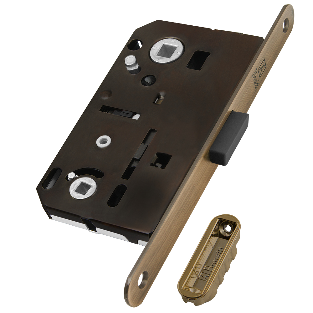 Замок Bonaiti (Бонаити) межкомнатный магнитный под WC B-FORTY N62 с отв F45 (античная бронза), планка 190 мм