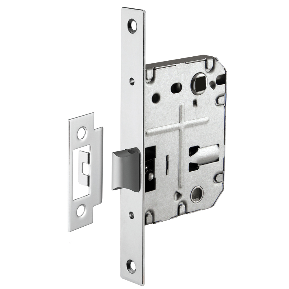 Защелка LP72-50 имеет 2 класс надежности (100 000 циклов открывания/закрывания). Размер бэксета - 50 мм, межосевого расстояния - 70 мм. Возможна установка дверных ручек на стяжные винты для более прочного крепления. Цвет: хром. В комплектацию входят: ответная планка и крепежная фурнитура в цвет изделия.