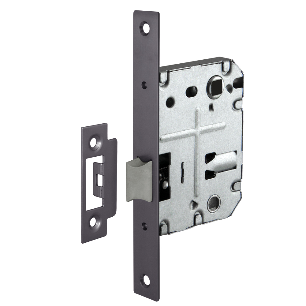 Защелка LP72-50 имеет 2 класс надежности (100 000 циклов открывания/закрывания). Размер бэксета - 50 мм, межосевого расстояния - 70 мм. Возможна установка дверных ручек на стяжные винты для более прочного крепления. Цвет: графит. В комплектацию входят: ответная планка и крепежная фурнитура в цвет изделия.