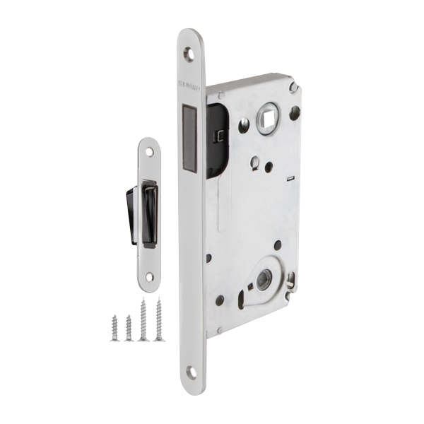 Предназначена для установки в деревянные межкомнатные и сантехнические двери, подходит для дверей левого и правого открывания. Корпус выполнен из стали с надежным гальваническим покрытием. Магнитный механизм обеспечивает бесшумность работы защелки. Защелка 5300-M-WC c усиленным блоком пружин имеет высший 4 класс надежности (250 000 циклов открывания/закрывания). Отверстия под стяжные винты находятся на расстоянии 38 мм. Размер межосевого расстояния - 90 мм.