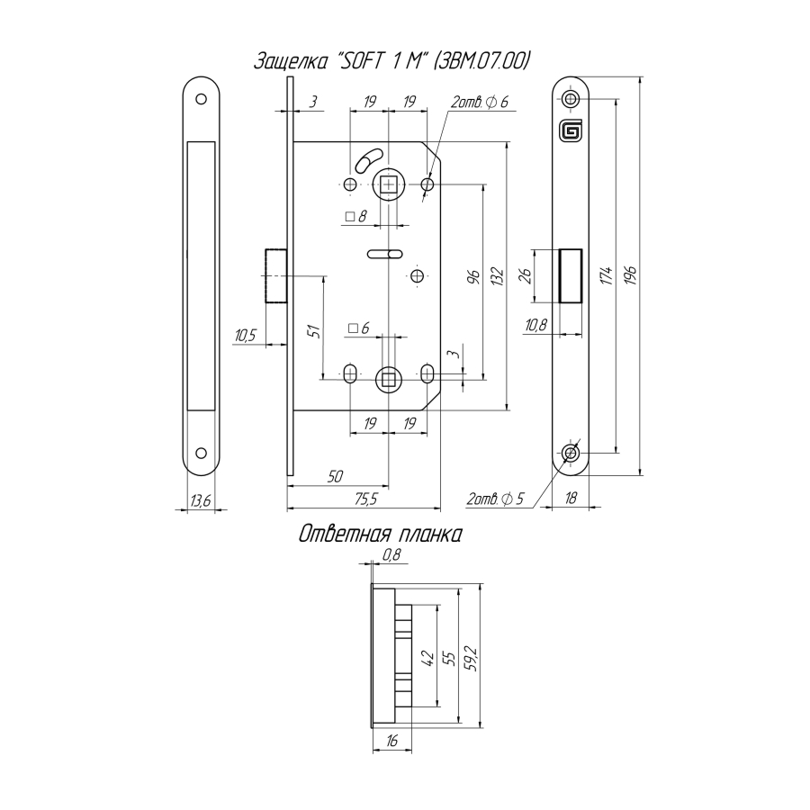 Защелка межкомнатная Soft 1М предназначена для установки в межкомнатные деревянные двери. Подходит для дверей правого и левого открывания (смена направления язычка осуществляется без разборки защелки). Магнитный язычок обеспечивает бесшумное открывание/закрывание двери. Межосевое расстояние 96 мм. Работоспособность 250 000 циклов. Ответная планка входит в комплектацию замка. Цвет: матовый черный.