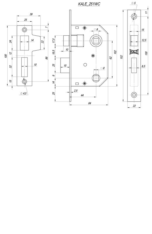 Защелка Kale kilit (Кале килит) врезная 251 WC (44 mm) (латунь), прав.