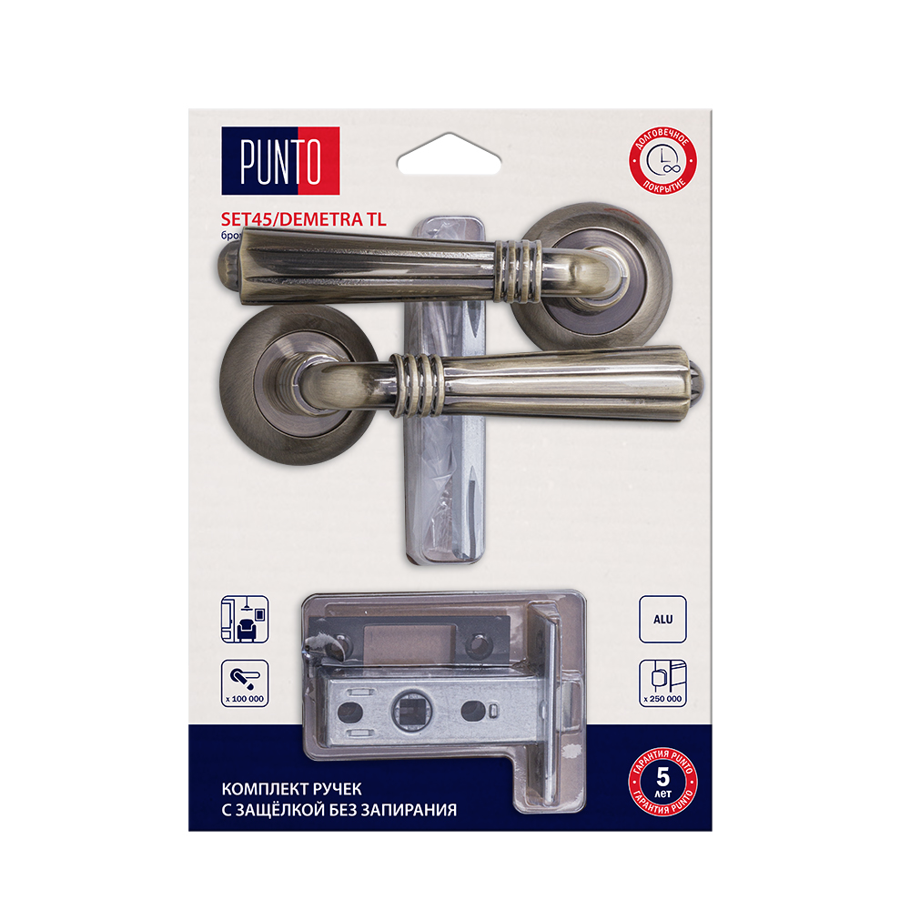 Комплект ручек Punto (Пунто) с защелкой без запирания LM/A SET45R.TL54.DEMETRA/HD ABG-6 бронза