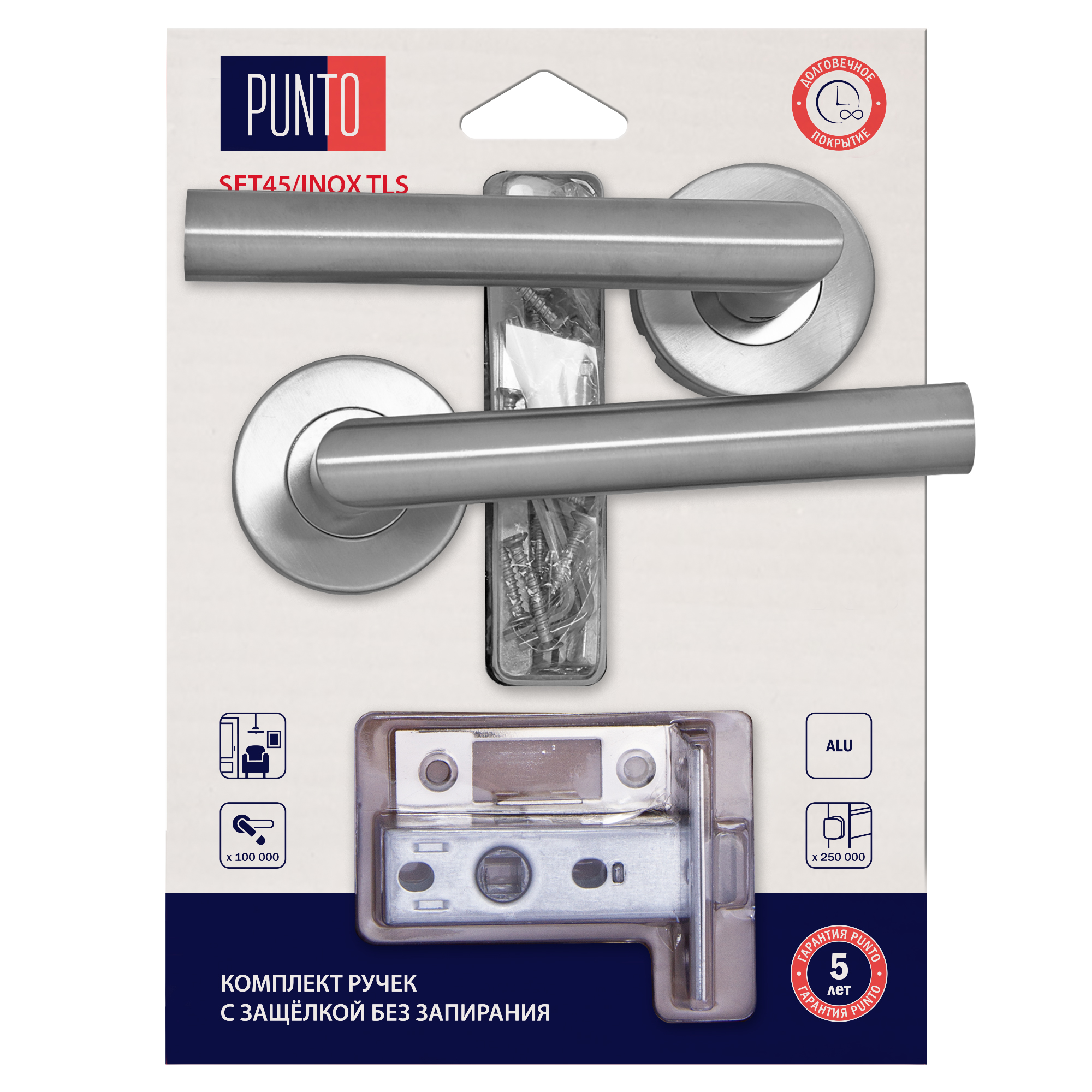 Комплект ручек Punto (Пунто) с защелкой без запирания LM/A SET45R.TLS54.INOX/HD нерж. сталь