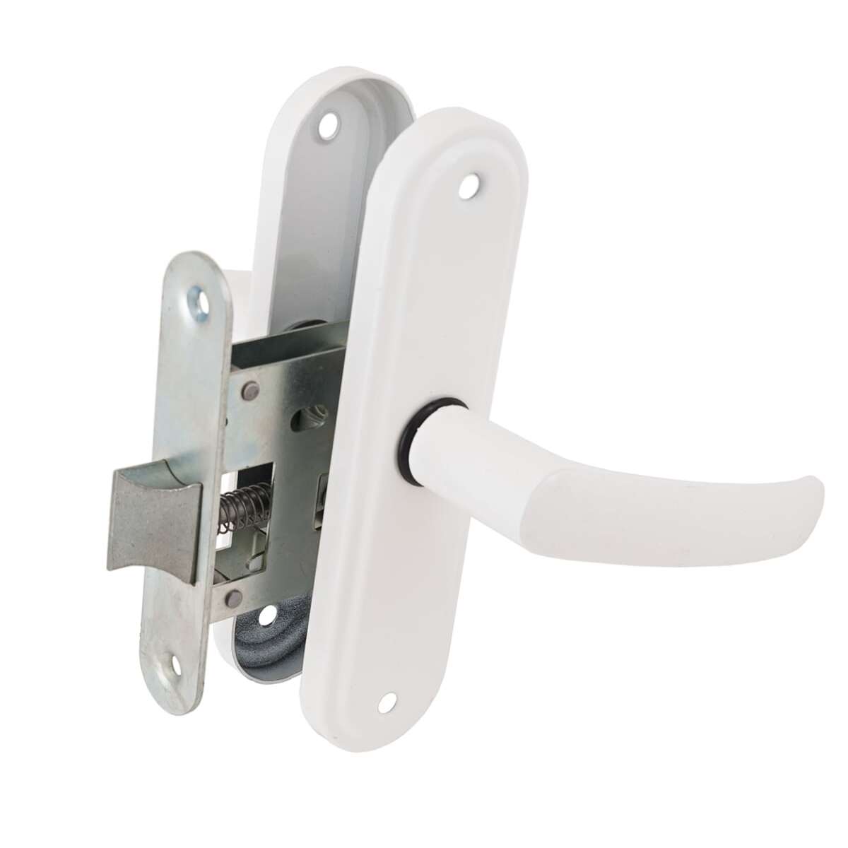 Защелка врезная с ручками. Предназначена для установки в деревянные двери толщиной до 45мм, правого и левого открывания. Универсальная защелка. Стальной корпус, покрыт гальваническим покрытием. Удаление ключевого отверстия 45мм. Материал ручек алюминиевый сплав. Комплектация: защелка, ручки, ответная планка, шурупы.