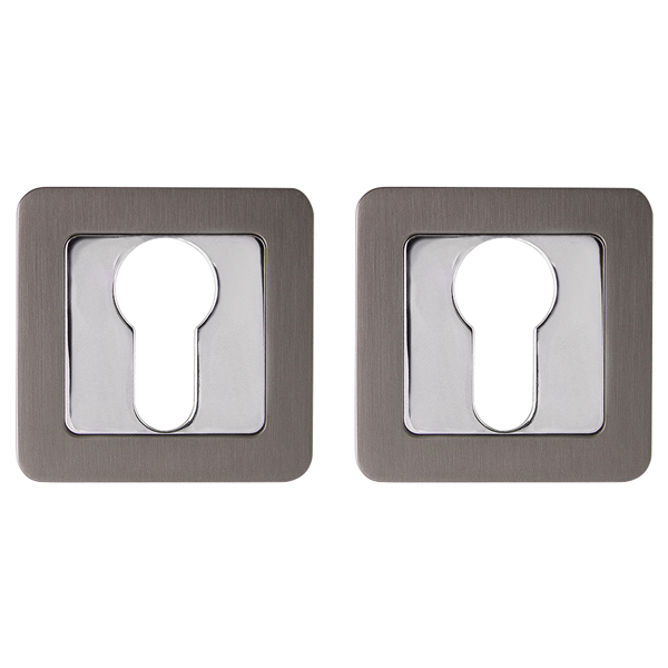 Накладки на квадратном основании Punto ET серии QR из коллекции SIMPLE LIVING под цилиндровый механизм, предназначены для декорирования замочной скважины. Материал изготовления: ZAMAK (сплав цинка, алюминия, магния и меди). Гальваническое покрытие прошло тест на устойчивость к коррозии в соляном тумане и соответствует 1 классу ГОСТ. Цвет: графит/хром. Крепежная фурнитура в комплекте.
