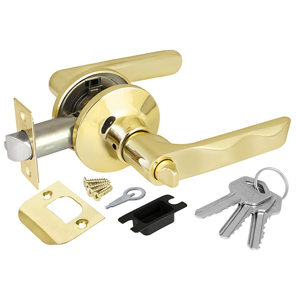Комплект дверных ручек с защелкой (KNOB) Punto предназначен для установки в межкомнатные двери толщиной 35-45 мм. Подходит для дверей правого и левого открывания. Гальваническое покрытие прошло тест на устойчивость к коррозии в соляном тумане и соответствует 1 классу ГОСТ. Ресурс работы ручек-защелок более 150 000 циклов открывания/закрывания, что гарантирует безотказную работу двери более чем на 15 лет. Бэксет защелки регулируется - 60/70 мм. Модификация: ключ/фиксатор. Цвет: золото. Комплектация: защелка, ответная планка с декоративной заглушкой, дверные ручки, крепежная фурнитура, 3 ключа, инструкция по установке.