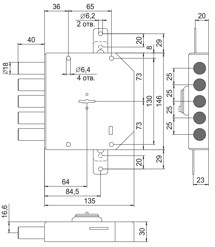 Замок Elbor (Эльбор) накладной гаражный Гранит 1.06.56.МА никель, сув., 5 риг., тяги, медный антик /00427/