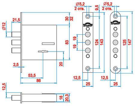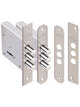 Замок врезной сувальдный Кремень 1.04.06.К имеет 6 сувальд, предназначен для внешних, внутренних и межкомнатных дверей. Закрывается на два оборота, 3 ригеля диаметром 12 мм, вылет ригелей 21 мм. Соответствует 3-му классу безопасности. В замках используются серийно изготовленные пружины с соответствующими прочностными характеристиками. В комплектацию входит ответная планка прямоугольная.
