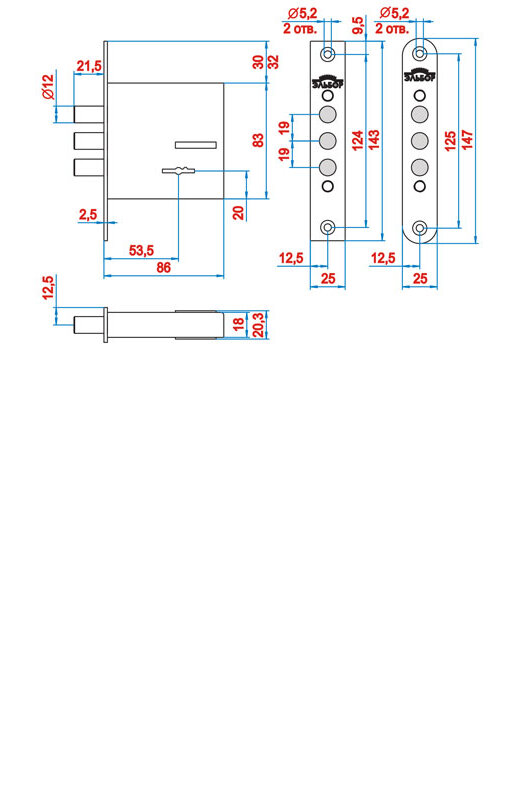 - Размер ригеля12 мм