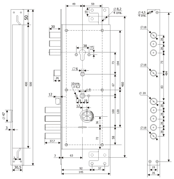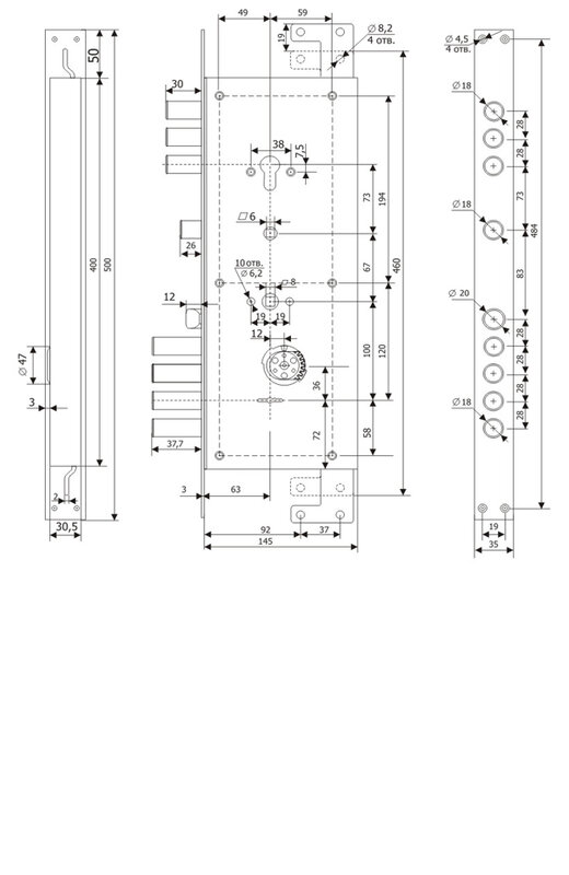 - Тип замкаОсновной (с защелкой под ручку)