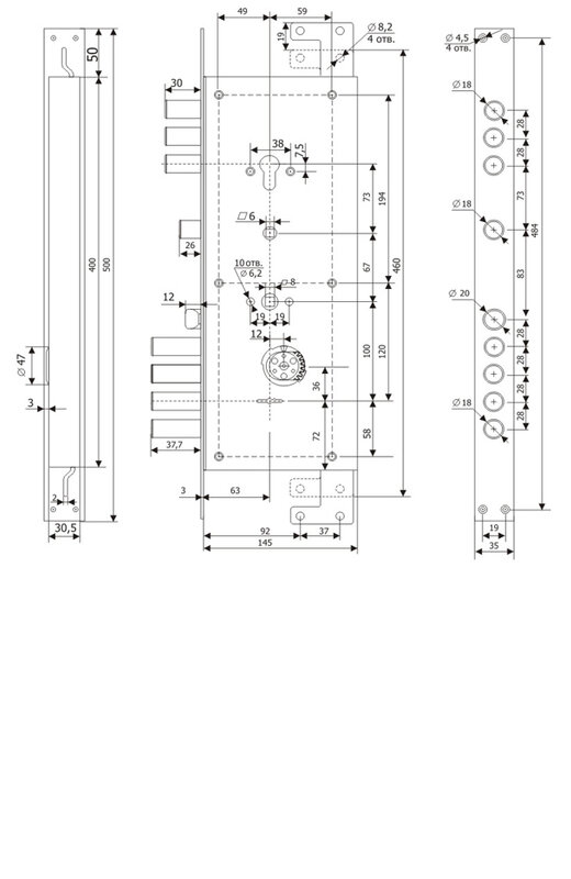 - Тип замкаОсновной (с защелкой под ручку)