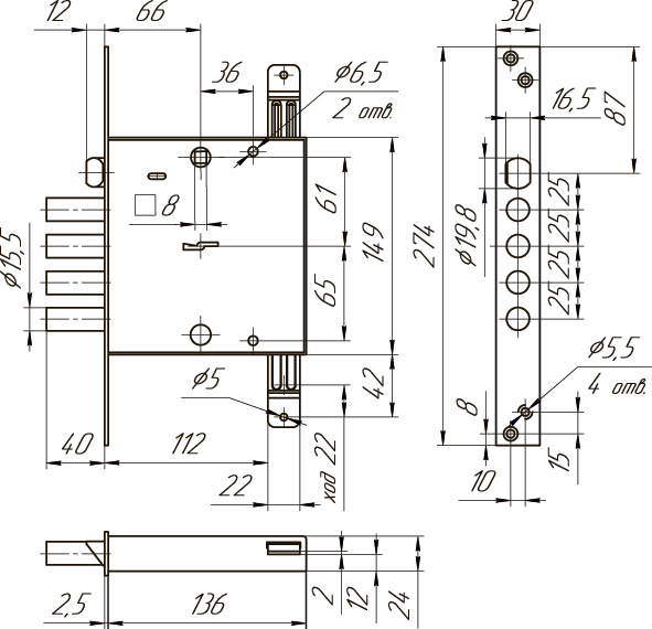 Замок Mettem (Меттэм) врезной сувальдный с защёлкой ЗВ9 143.1.0 с тягами, 5 кл.