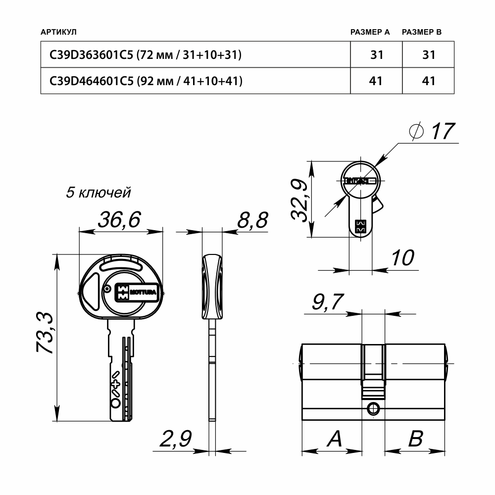 - Тип цилиндраКлюч-ключ