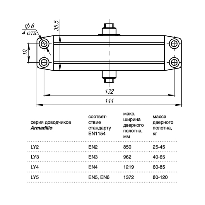 Доводчик Armadillo (Армадилло) дверной морозостойкий LY2 45 кг (бронза)