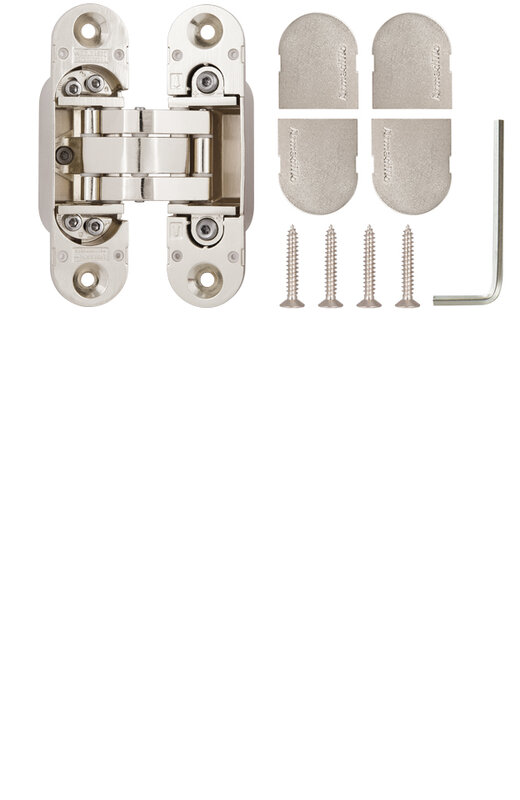 Петля скрытой установки с 3D-регулировкой UNIVERSAL 3D-ACH 60 SN матовый никель предназначена для скрытой установки в межкомнатные двери толщиной от 40 мм. Рассчитана на нагрузку до 60 кг при установке двух петель.