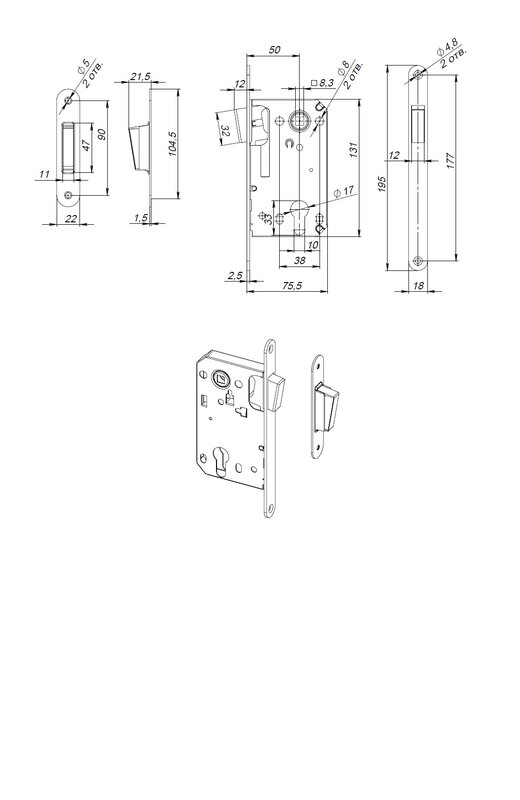 - Тип защелкиУниверсальная, с выпадающим ригелем