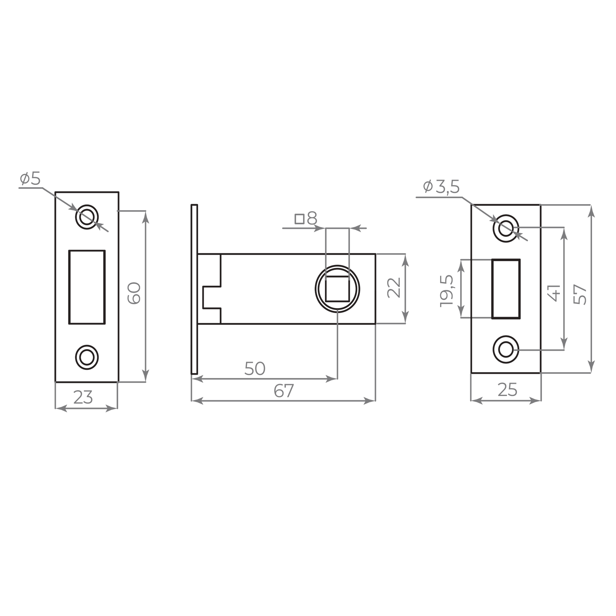 Дверная магнитная защелка AJAX серии MAGNLN50 предназначена для установки в деревянные межкомнатные двери правого и левого открывания. Материал корпуса: сталь.