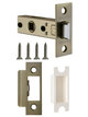 В комплект входит: защёлка, ответная планка, декоративная заглушка, комплект крепежа. Материал корпуса: сталь, материал планки и язычка: ZAMAK. Гарантия 5 лет.