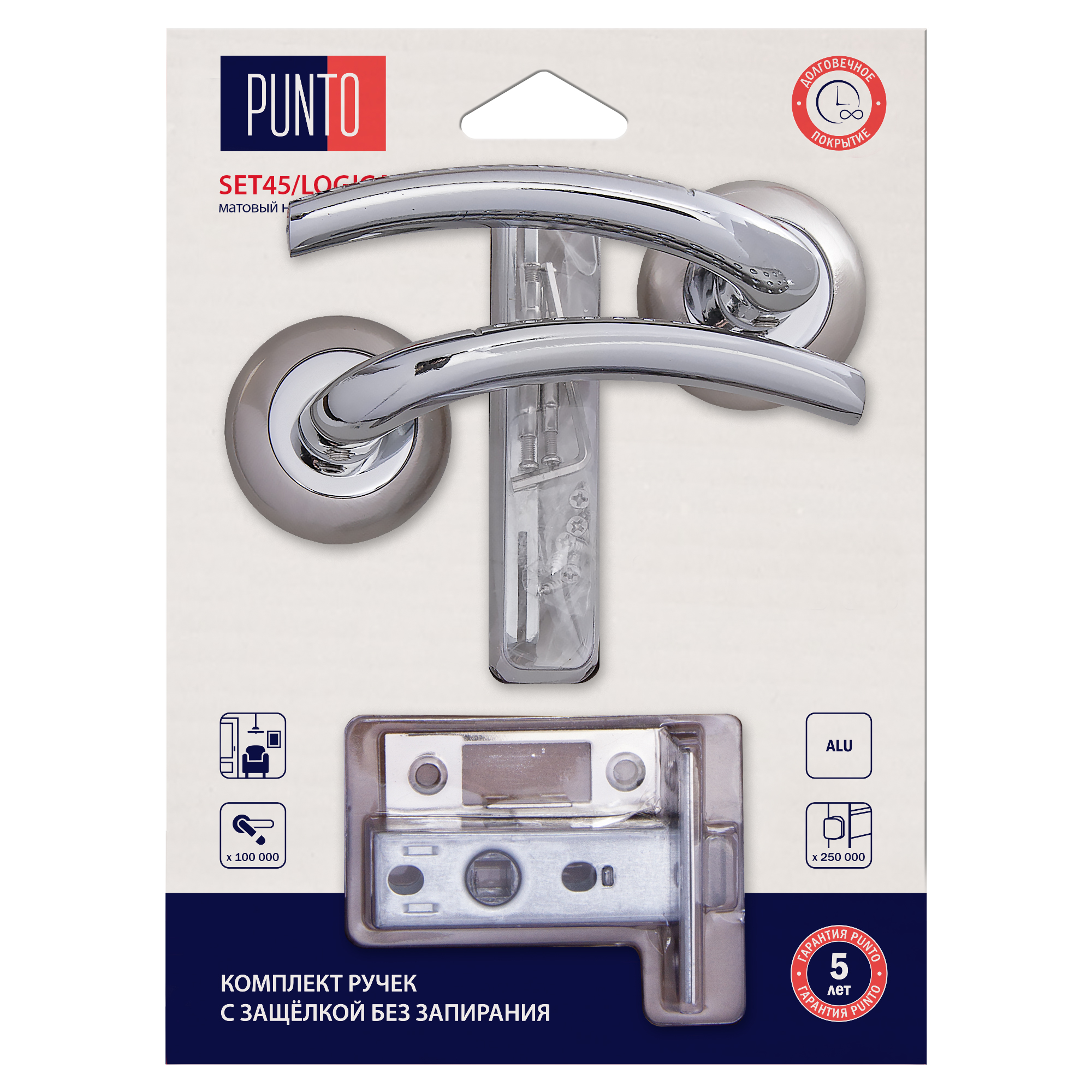 Комплект ручек Punto (Пунто) с защелкой без запирания LM/A SET45R.TL54.LOGICA/HD SN/CP-3 матовый никель/хром