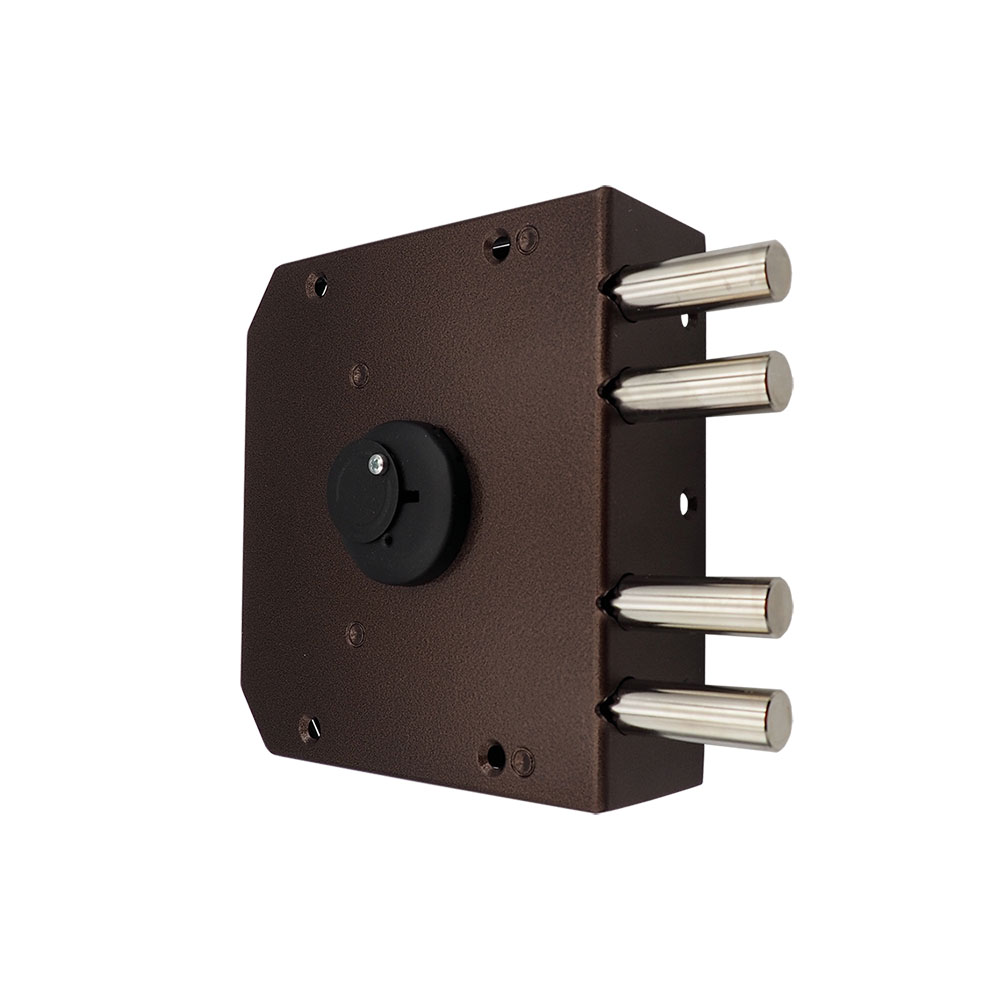 Замок накладной ЗН4 090.0.0 сувальдный подходит для установки в двери различных типо. Сертифицированный в соответствии со 2-м классом ГОСТ 5089-2011. Замок запирает дверь четырьмя стальными ригелями диаметром 14 мм, которые выдвигаются из корпуса замка на 40 мм. Замок комплектуется 5-тью латунными ключами и одной декоративной накладкой из нержавеющей стали (для внешней стороны двери).