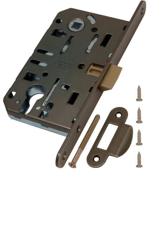 B01103.50.12.567 Замок межкомнатный под цилиндр в комплекте с ответной планкой. Блистерная упаковка. Цвет античная бронза. Защелка MEDIANA EVOLUTION с пластиковым язычком отличается бесшумностью при закрывании. Она разработанна инженерами компании AGB и объединяет в себе надежность, качество используемых материалов, точность механических соединений и инновации. Все замки серии Evolution имеют один размер и взаимозаменяемы между собой.