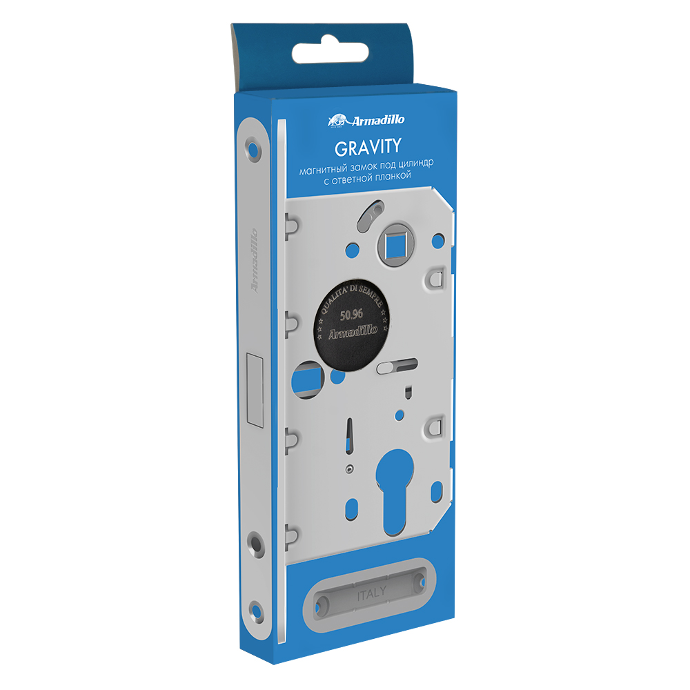 Магнитные межкомнатные замки Armadillo GRAVITY - симбиоз итальянского дизайна и современных технологий. Абсолютная бесшумность работы достигается за счет магнитного механизма, срабатывающего только при закрывании. В остальное время защелка утоплена в полотно. Такая конструкция делает торец более эстетичным и продлевает срок службы самого изделия.