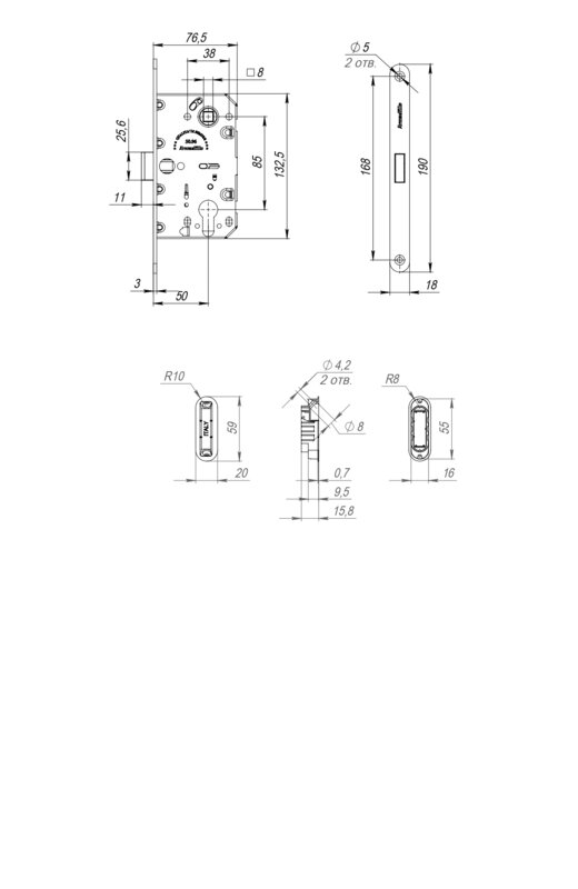 Уникальная форма ответной планки со скошенными краями гарантирует идеальное сцепление и плавное закрывание. Доступны два размера планки: 190 и 196 мм.