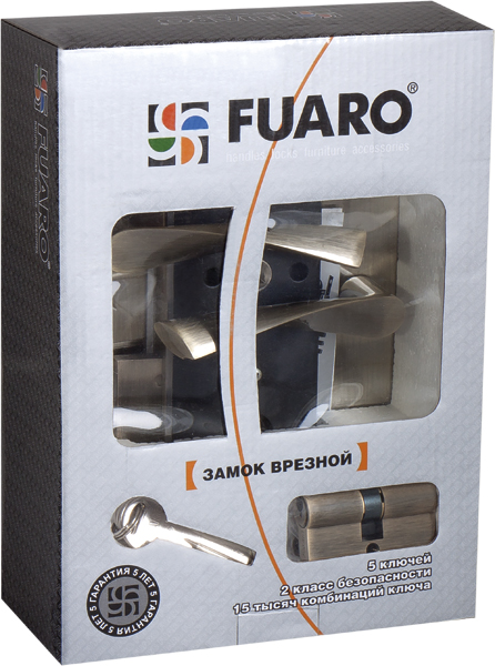 Врезной замок Fuaro SET F9011 в комплекте с ручками предназначен для установки в деревянные входные и межкомнатные двери. Гальваническое покрытие прошло тест на устойчивость к коррозии в соляном тумане - более 72 часов. Ресурс работы более 250 000 циклов открывания/закрывания. Секретность 15 000 комбинаций, 2 класс безопасности. Корпус врезного замка с межосевым расстоянием 85 мм, бэксетом 45 мм, универсальной защелкой для левых и правых дверей. Дверные ручки на планке: материал ручек - алюминий, материал планок - сталь. В основании ручки опорный подшипник. Латунный цилиндровый механизм в цвет замка 100 CA 70 мм (30+10+30), 5 ключей. Цвет: бронза. Фурнитура: ответная планка, стяжные винты для ручек, крепежная фурнитура.
