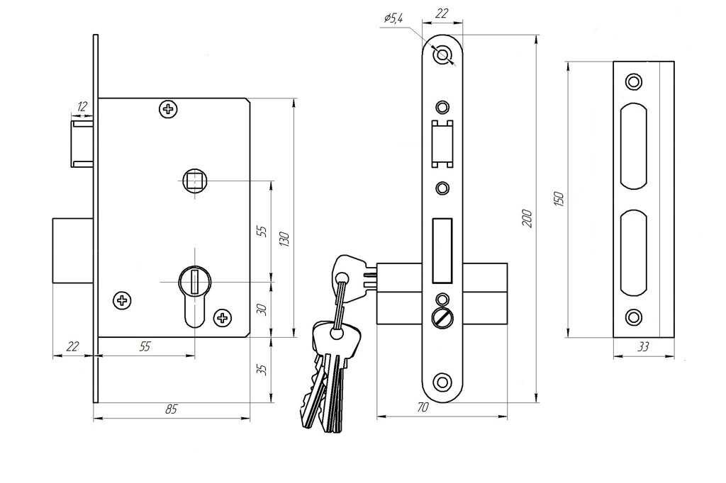 Замок врезной цилиндровый ЗВ4-3.04 предназначен для установки в деревянные и металлические двери толщиной 40-55 мм, правого и левого открывания. Верхняя реверсивная защелка приводится в действие ручкой или цилиндровым механизмом. Прямоугольный ригель с ходом 22 мм. Корпус замка выполнен из стали, ручки на планке из алюминия с декоративным финишным покрытием. Цвет: медь. Преимущества замка: простая, надежная конструкция; невысокая стоимость. В комплектацию входят: замок, усиленные ручки на планке, цилиндровый механизм 70 мм, 4 ключа, ответная планка и крепежная фурнитура.