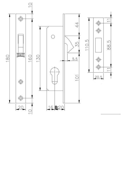 Врезной замок 1 ригель для скользящих дверей с английским (10 пинов) цилиндровым механизмом 62(26х10х26)мм. Расстояние от планки до центра цилиндрового механизма 20мм.