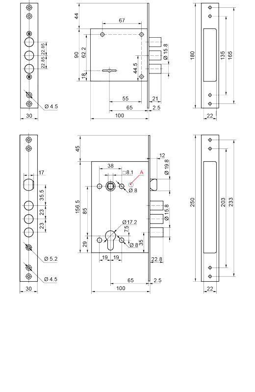 - Бэксет (удаление ключевого отверстия)55 мм, 65 мм