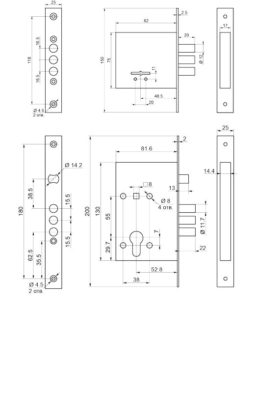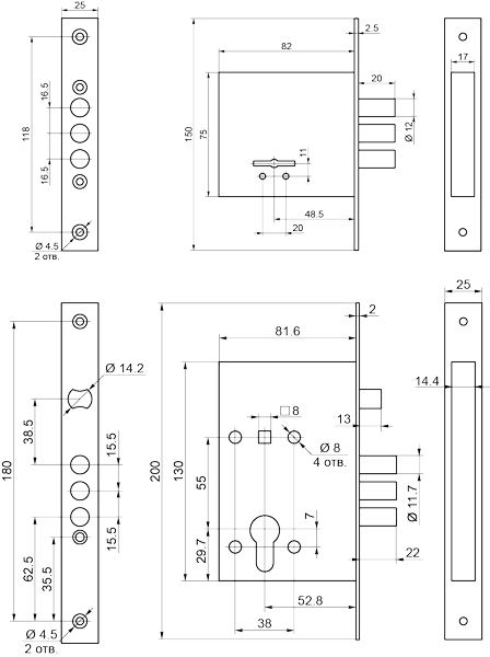 Комплект BORDER Standart - Комплект из двух врезных универсальных замков ЗВ 8-8 У и ЗВ 4-3/55 с разными механизмами секретности, верхний сувальдный, нижний цилиндровый. Идеальное решение для производителей дверей. Хорошие защитные свойства и доступная цена.