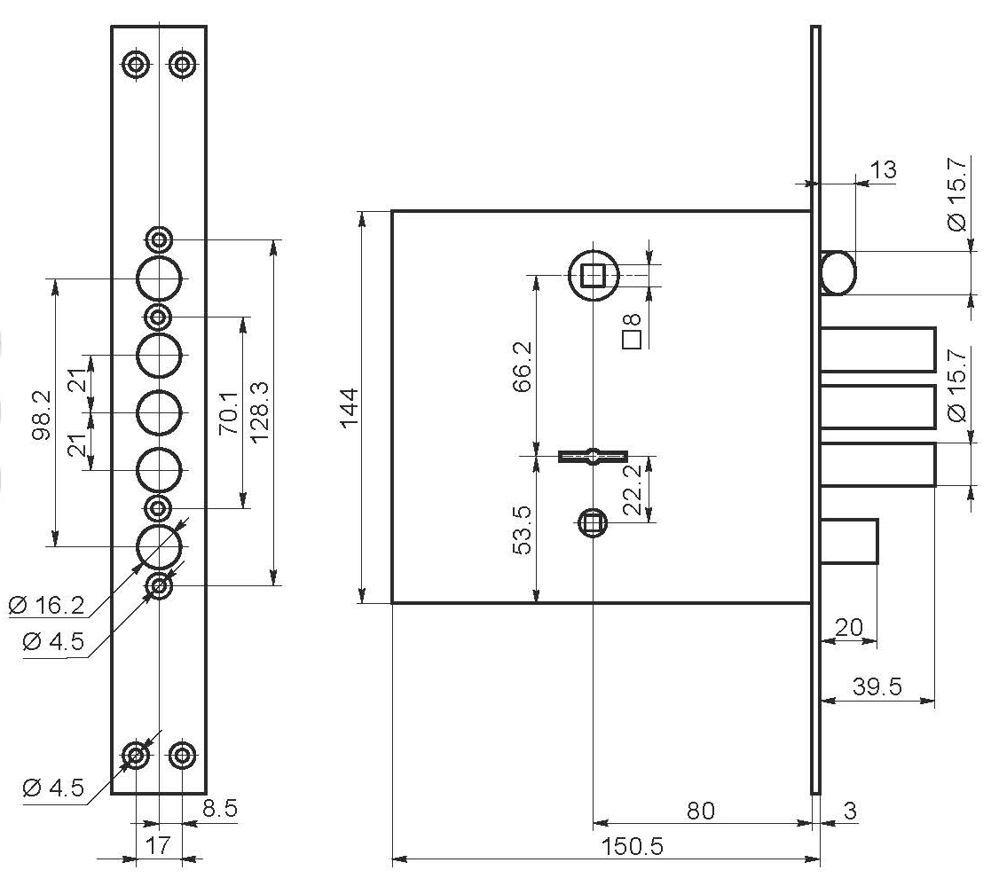 - Бэксет (удаление ключевого отверстия)80 мм