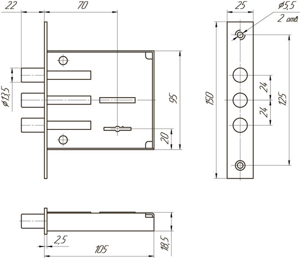 - Размер ригеля13,5 мм