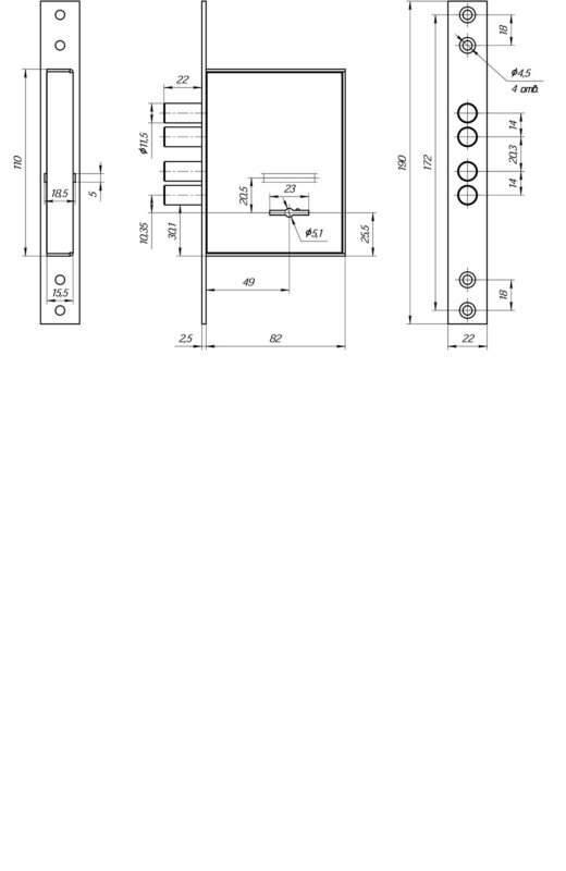 - Бэксет (удаление ключевого отверстия)51,5 мм