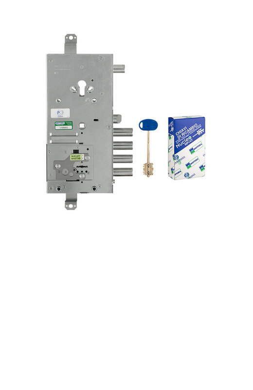 Замок врезной двухсистемный перекодируемый Mottura 54.J919M My Key D предназначен для металлических и бронированных дверей правого открывания. Это более усовершенствованная модель: нуклео больше не выступает над поверхностью и не требует под себя «окно» в двери. Инновационные замки My Key имеют подвижные сферы на стержне ключа и внутренние пины, существенно затрудняющие вскрытие отмычками (патент компании Mottura), а также предотвращающие незаконное изготовление дубликатов ключей. Копии таких ключей можно изготовить только в авторизованных центрах Mottura Club при предъявлении оригинального ключа и карточки владельца. Перекодировать замок очень просто. С каждым замком поставляется инструкция по перекодировке на русском языке. Перекодировка осуществляется с торца замка. Возможность изменять кодовую комбинацию замка неограниченное количество раз. Функция перекодировки замка позволит самостоятельно и в любой момент заменить ключи в замке. Возможно самостоятельно создавать мастер-системы. Нижний 4-оборотный замок на три точки запирания с нуклео, с реверсивной защелкой диаметром 19 мм, приводимой в действие ключом и ручкой. Верхний 2-оборотный боковой цилиндровый замок (с зубчатой передачей), круглый ригель диаметром 18 мм ходом 22мм, защелка и блокировка нижнего замка. В комплекте: 5 сувальдных ключей 60 мм в герметичной упаковке, 1 внутренняя накладка, 1 наружная накладка.