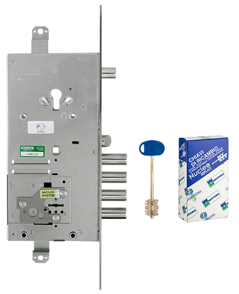 Замок врезной двухсистемный перекодируемый Mottura 54.J939M My Key S предназначен для металлических и бронированных дверей левого открывания. Это более усовершенствованная модель: нуклео больше не выступает над поверхностью и не требует под себя «окно» в двери. Инновационные замки My Key имеют подвижные сферы на стержне ключа и внутренние пины, существенно затрудняющие вскрытие отмычками (патент компании Mottura). При повороте ключа ключевое отверстие перекрывается вращающейся пластиной, которая препятствует использованию отмычек. При закрывании цилиндрового замка пластина из особо прочной марганцовистой стали полностью перекрывает ключевое отверстие сувальдного замка. Пластина из марганцовистой стали защищает замок от высверливания и вскрытия отмычками. Перекодировать замок очень просто. С каждым замком поставляется инструкция по перекодировке на русском языке. Перекодировка осуществляется с торца замка. Возможность изменять кодовую комбинацию замка неограниченное количество раз. Функция перекодировки замка позволит самостоятельно и в любой момент заменить ключи в замке. Возможно самостоятельно создавать мастер-системы. Нижний 4-оборотный замок на три точки запирания с реверсивной защелкой диаметром 19 мм, приводимой в действие ключом и ручкой. Верхний 2-оборотный боковой цилиндровый замок с шестереночным приводом приводит в действие защелку и ограничитель открывания. Ограничитель открывания независимый. В комплекте: 5 сувальдных ключей 50 мм в герметичной упаковке, 1 внутренняя накладка, 1 наружная накладка.